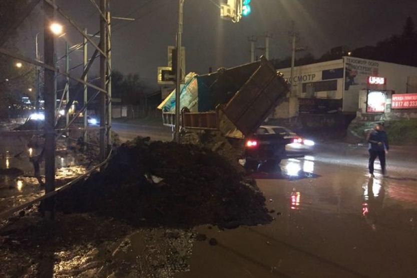 Завоз грунта на данный участок был начат вчера вечером. За ночь за 142 рейса привезено 1136 куб.м грунта. С соблюдением мер безопасности работали 10 самосвалов, 5 погрузчиков.